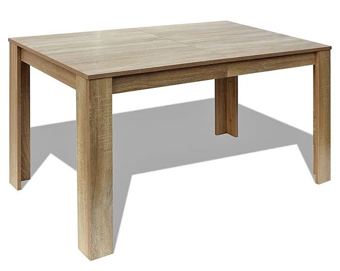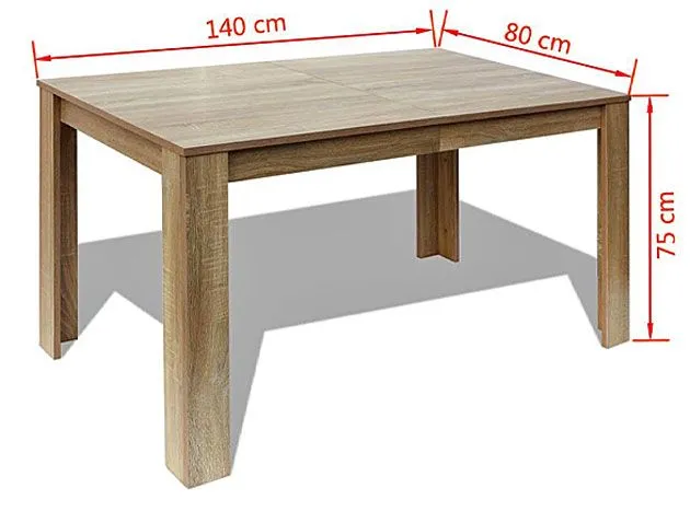 Stół Dexis 2K marki Elior oddaje Ci do dyspozycji użyteczny blat o wymiarach 140 cm x 80 cm o przyjemnej powierzchni i ładnym, przyciągającym wzrok rysunku drewna. Dodatkowo materiał ten zapewnia łatwe czyszczenie i prostotę utrzymania stołu w dobrej kondycji i schludnym wyglądzie. Stół Dexis 2K stanie się z pewnością nieodłącznym towarzyszem codziennych rytuałów, który ułatwi Ci życie, już nie będziesz się denerwować zbyt małym stołem albo atmosferą zbytniego zagracenia w kuchni czy jadalni. Nasza płyta wiórowa jest zbudowana z włókien ułożonych równolegle do powierzchni co zapewnia dużo lepszą trwałość i odporność mebla na częste problemy typu pęcznienie pod wpływem wody czy zarysowania. Zamów już teraz stół Dexis 2K o barwie dębu i ciesz się przyjaznym, uporządkowanym wnętrzem w swoim domu.