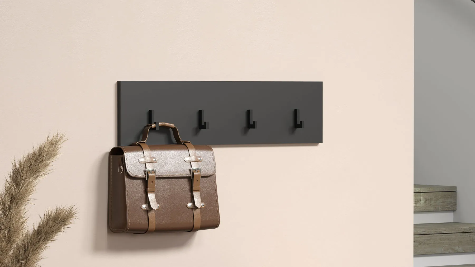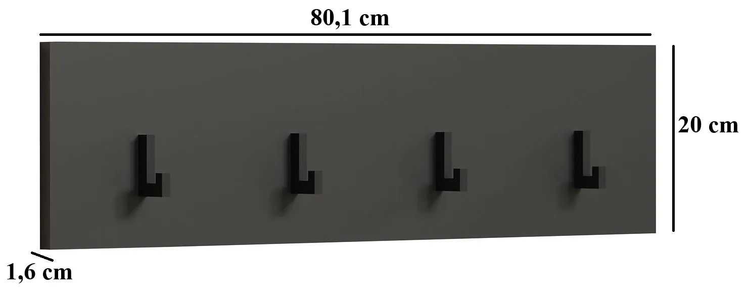 Prosty wieszak ścienny z 4 haczykami do przedpokoju grafit - Assoni 12X