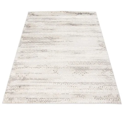 Bardzo ładny dywan - wzór w pasy z ornamentem dodaje charakteru salonowi, a beżowo‑szare kolory pięknie komponują się z meblami. Miękko się na nim chodzi, a całość wygląda estetycznie i nowocześnie.