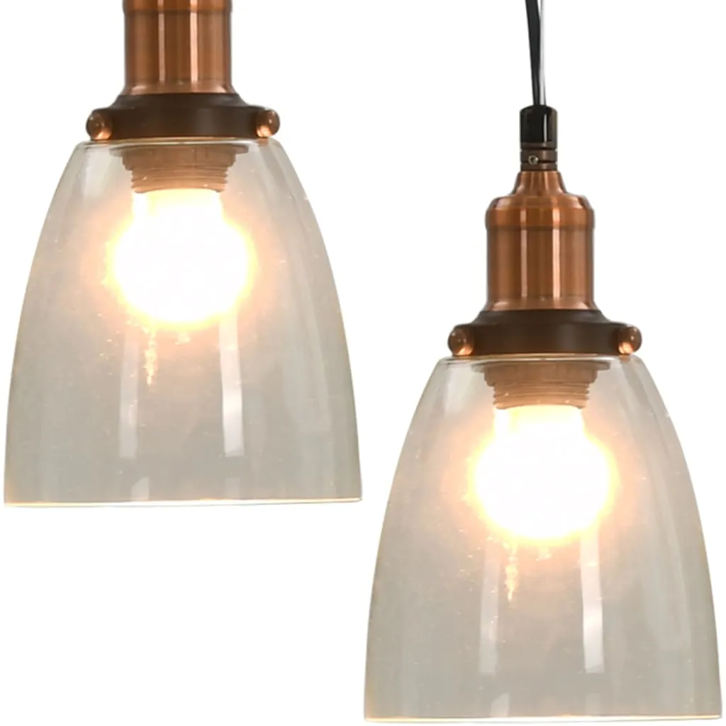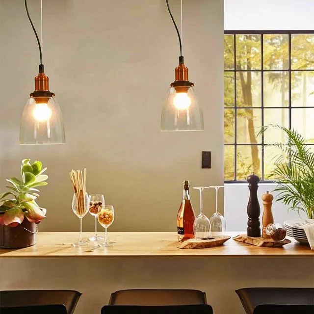Elegancki i nowoczesny design sprawia, że 2-częściowy zestaw lamp będzie się pięknie prezentował w jadalniach, salonach i biurach. Lampy będą świetnie pasować do wnętrz urządzonych w stylu nowoczesnym, minimalistycznym i loftowym.  Z pewnością będą wyjątkową i praktyczną ozdobą, jeśli zawiesisz kilka lamp w rzędzie nad ogromnym stołem w salonie lub jadalni. Co więcej miedziane, starodawne mocowanie sufitowe i szklane abażury zapewniają długą żywotność. Dzięki znajdującym się w zestawie elementom montażowym możesz łatwo i bezpiecznie zamocować lampę. W przesyłce znajdują się 2 lampy.