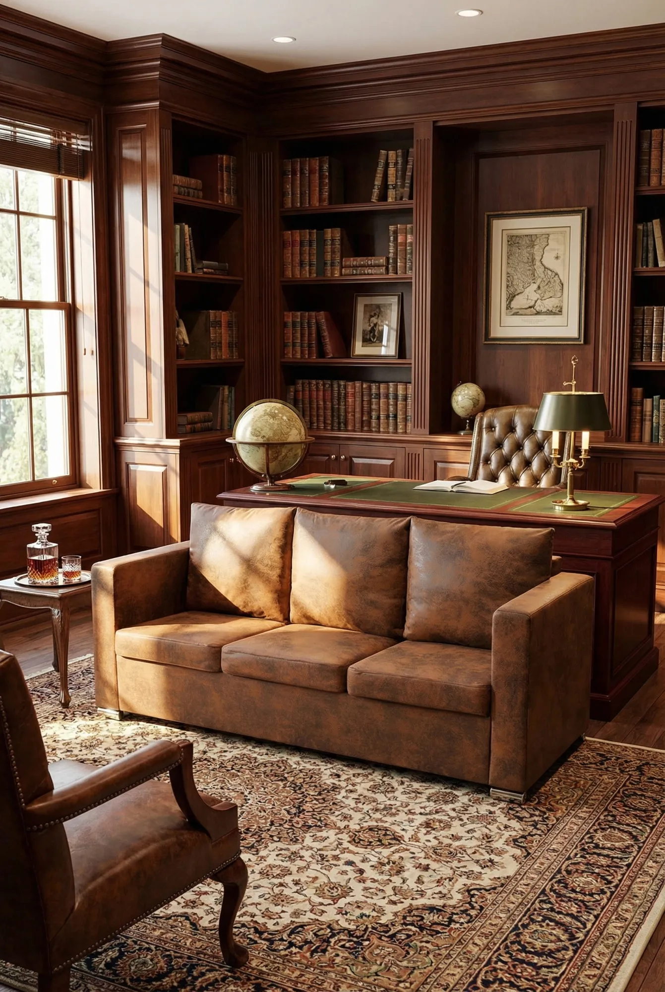 Aranżacja gabinetu z brązową sofą Pelagio 3Q