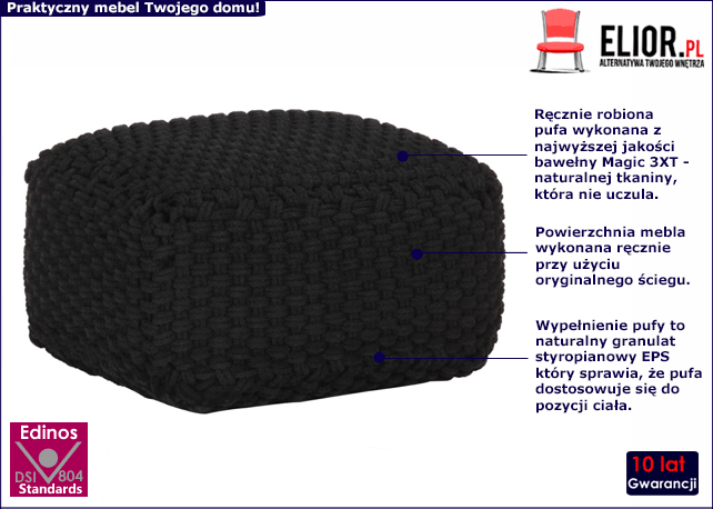 - Kolor: czarny. Kliknij w link i sprawdź także inne pufy w sklepie Edinos.pl. Stwórz swój praktyczny zestaw mebli.