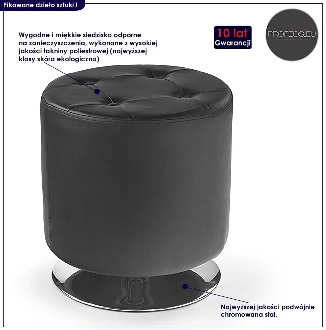 Prezentujemy Ci jakże efektowną wizualnie oraz niezwykle komfortową pufę do siedzenia Losera marki Profeos. Minimalistyczny styl i fantastyczny design świetnie sprawdzą się w każdym, urządzonym z pasją pomieszczeniu. Wyobraź sobie już dziś jak efektownie prezentowałyby się w Twoim wnętrzu... Komfortowa i wyraźnie dominująca swoim designem pufa Losera wyróżnia się nie tylko swoją unikalną formą, ale także zastosowaniem materiałów najlepszej jakości. To dlatego cieszy się ona powodzeniem wśród osób lubiących ciekawe rozwiązania. Designerska tapicerka pufy wykonana została z najwyższej jakości skóry ekologicznej odpornej na wilgoć i łatwiej w utrzymaniu czystości. Profil mebla stworzony został z nierdzewnej, chromowanej stali i efektownie komponuje się wizualnie z wysokiej jakości tkaniną poliestrową.