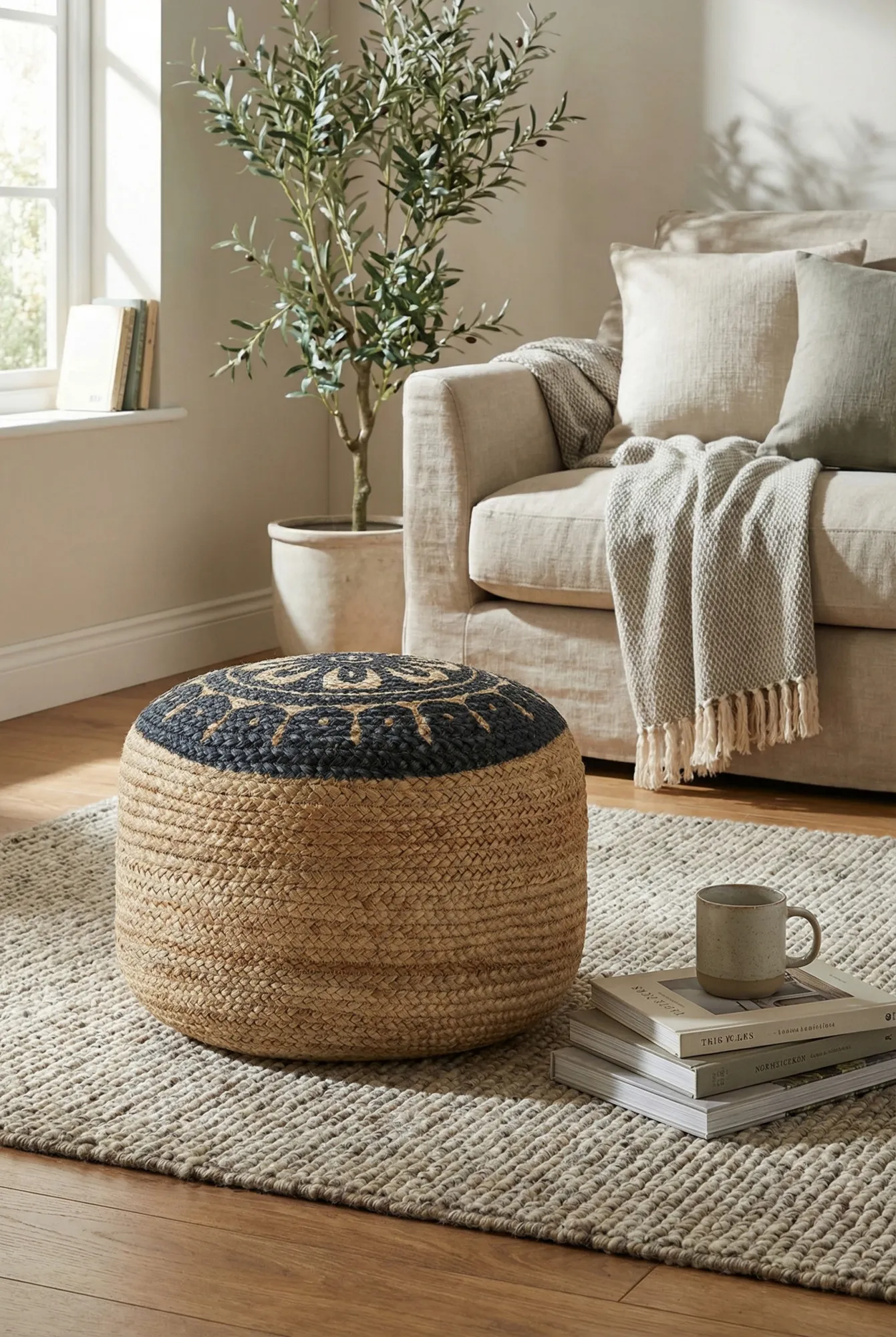 Dotyczy: Okrągła pufa podnóżek z juty - Opola 2X