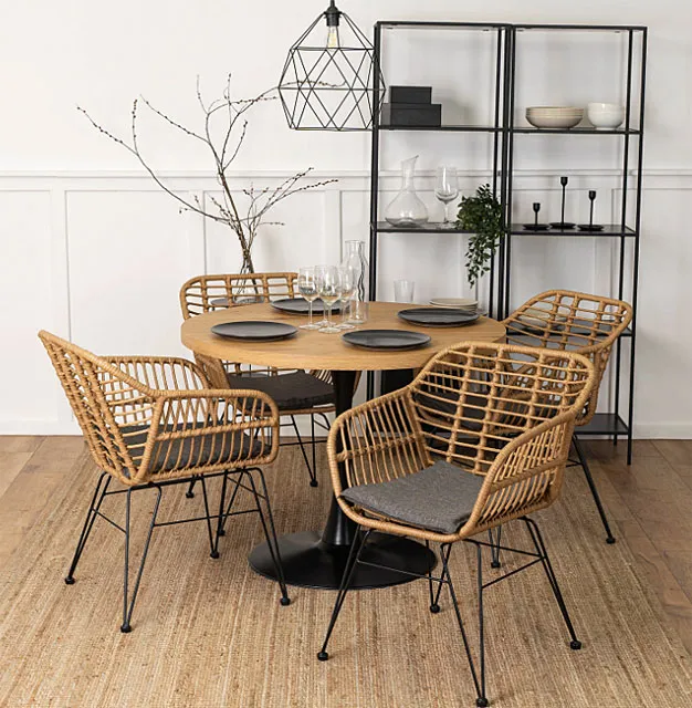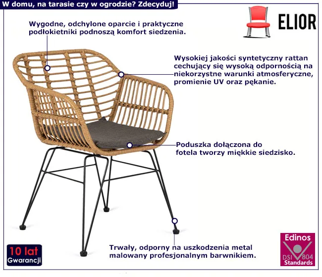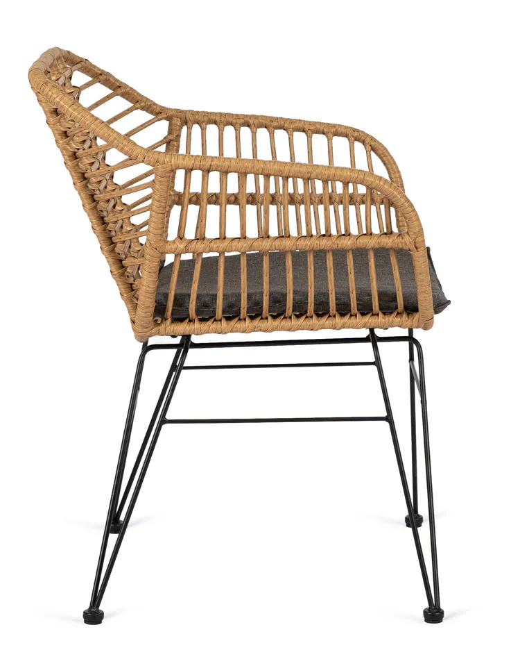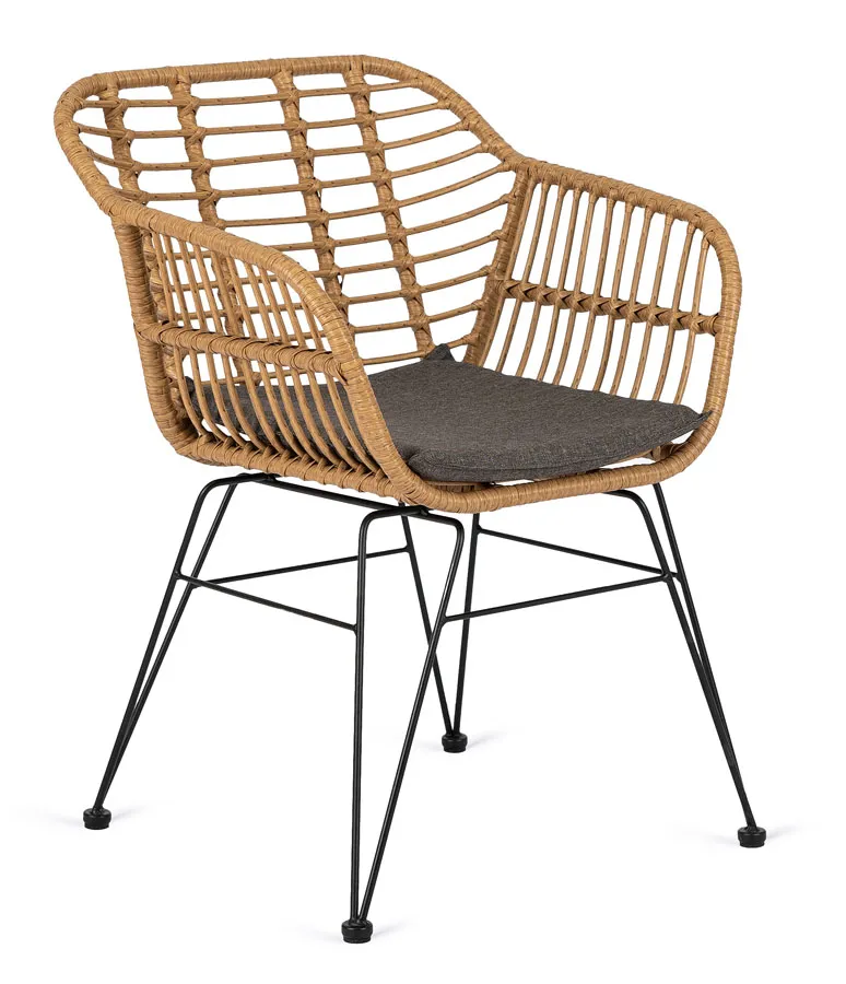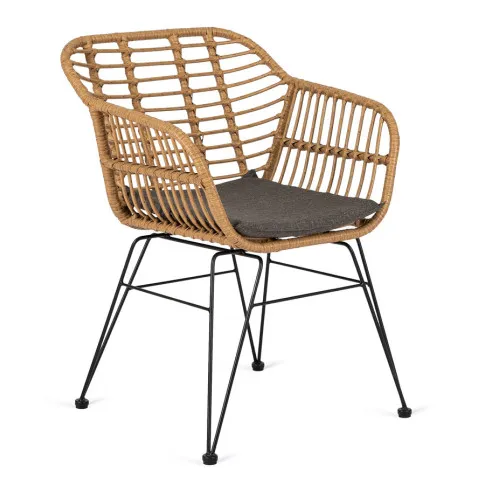 Dotyczy: Czarne krzesło boho z plecionki rattanowej z poduszką - Bohil