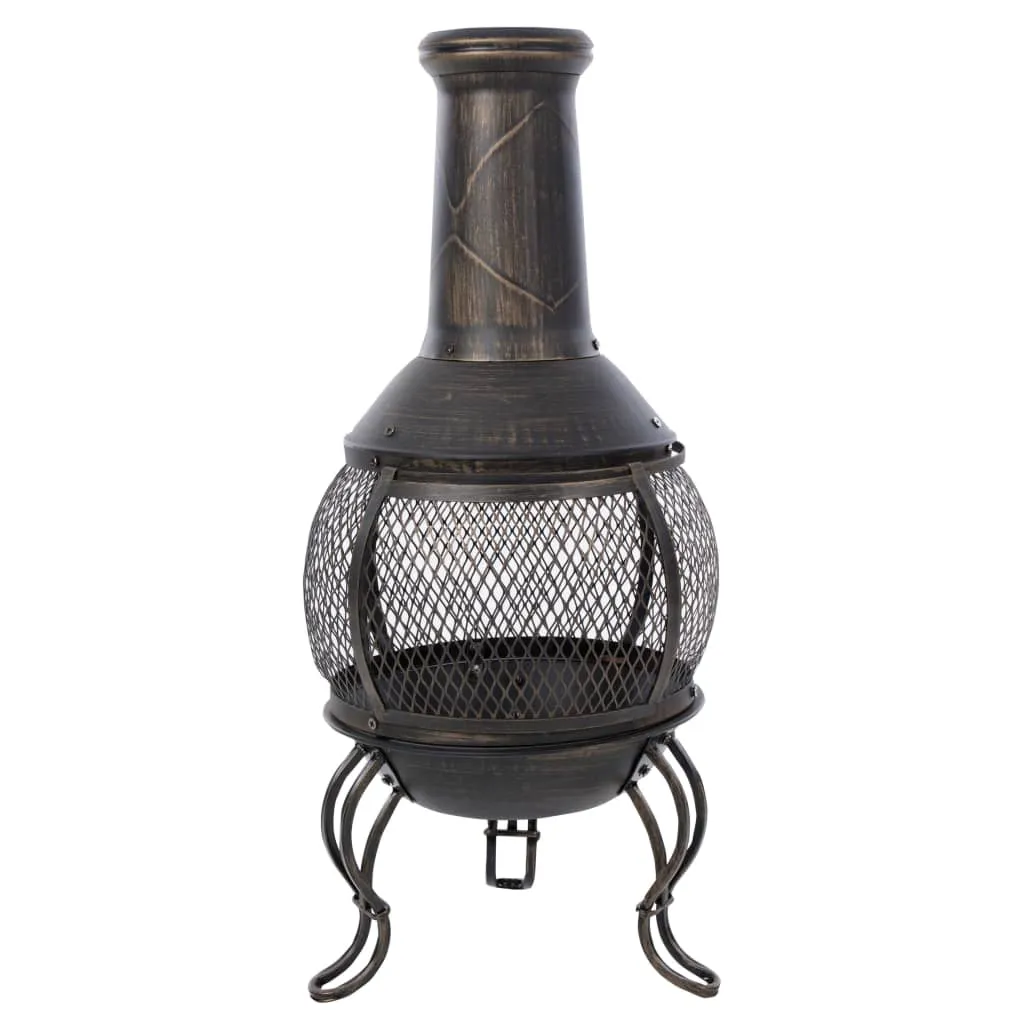 Palenisko Vobs marki RedFire stanowi nie tylko źródło ciepła, ale zapewnia także klimatyczne oświetlenie w jesienne wieczory za sprawą swojej otwartej konstrukcji! Stal stylizowana na brąz nadaje temu kominkowi stalowy, klasyczny wygląd, aby dopełnić dowolną przestrzeń na zewnątrz. Palenisko Vobs marki RedFire ma wysokość około 90 cm i szerokość około 40 cm oraz sprawdzi się w niemal każdym ogrodzie. Dla większego bezpieczeństwa palenisko otoczono drucianą siatką, chroniącą przed strzelającymi iskrami. Jest ono dostarczane wraz z pokrywą, kratką na drewno oraz pogrzebaczem. Montaż paleniska jest łatwy, możesz zatem w niedługim czasie cieszyć się ciepłem i klimatycznymi płomieniami.