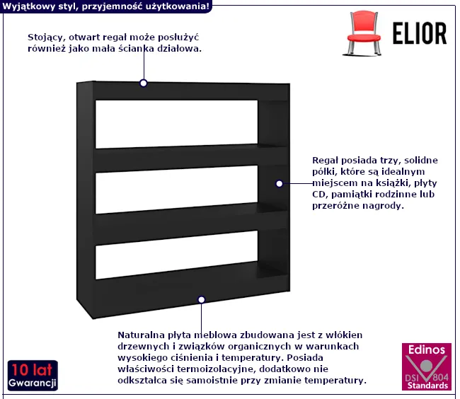 • Kolor: czarny. W naszej ofercie posiadamy także inne regały na książki.