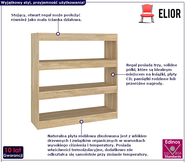 • Kolor: dąb sonoma. W naszej ofercie posiadamy także inne regały na książki.