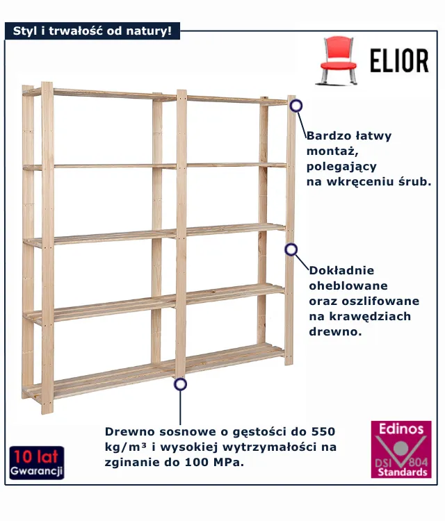 Regał Pinewood marki Edinos Premium to więcej niż mebel – to rozwiązanie, które uprości Twoje życie. Dzięki niemu zyskasz przestrzeń, porządek i styl w jednym. Niezależnie od tego, czy ustawisz go w salonie, garderobie czy przedpokoju, stanie się praktycznym elementem Twojego domu. A teraz pytanie: czy jesteś gotów, by w końcu poukładać wszystko na swoim miejscu? Regał Pinewood za jedyne 388 zł i ciesz się harmonią w swoim wnętrzu!