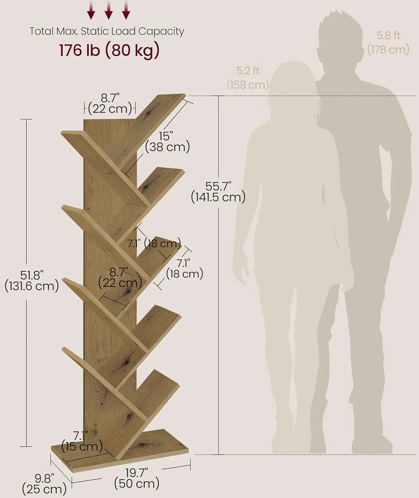 Regał sprawuje się dobrze, wygląda ładnie, ale podczas składania jedna z gałęzi wymagała lekkiego dociśnięcia by ustawić ją idealnie w linii pionu. Po tej regulacji półki działają i wyglądają ok