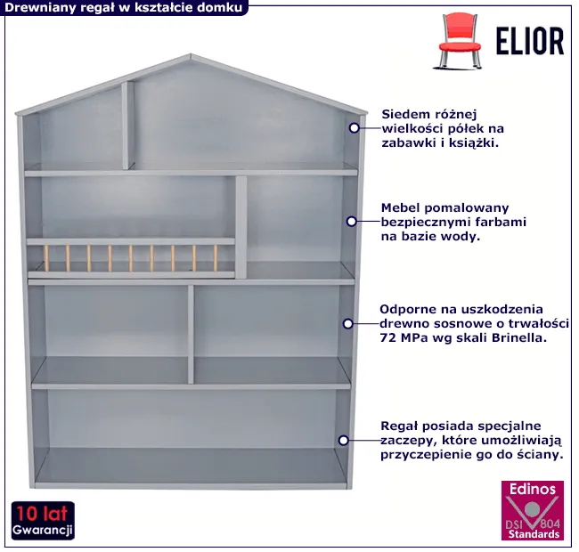• regał powstał z drewna sosnowego o trwałości 72 MPa