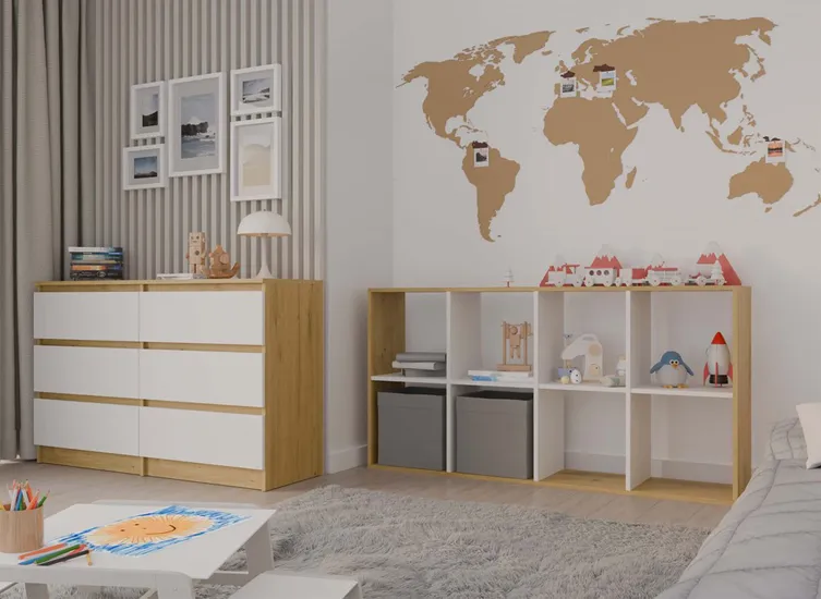 Regał komorowy dąb artisan + biały - Begonis 5x