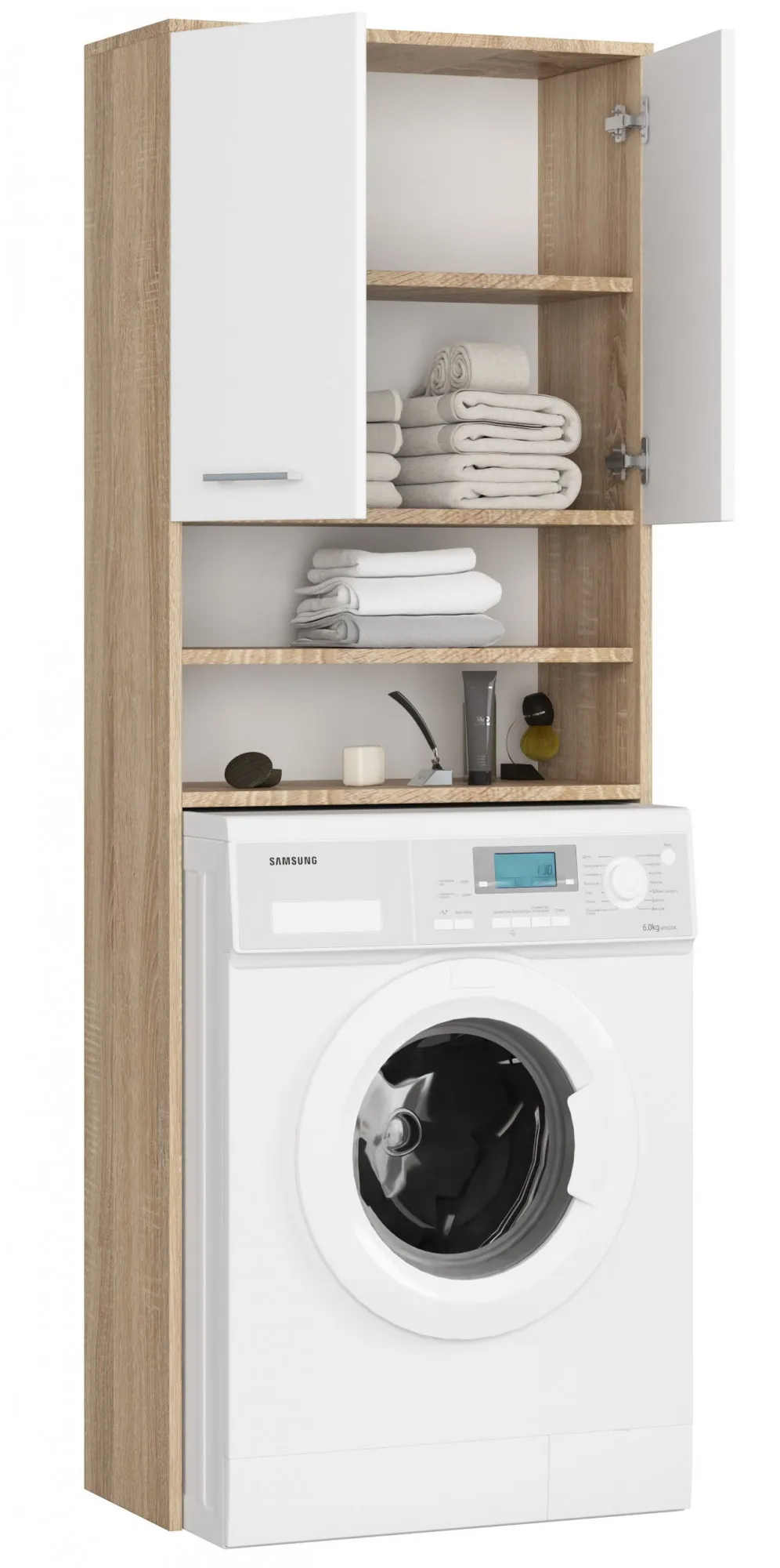 Nie oszukujmy się.... w robieniu prania nie ma nic ekscytującego. Jednak, żeby chodzić w czystych i pachnących ubraniach, musimy je regularnie prać. Pralki znacznie ułatwiają nam życie, ale potrzebują również odpowiedniego miejsca niekiedy w bardzo małych łazienkach, dlatego tak ważne jest, aby odpowiednio zadbać o zagospodarowanie pomieszczenia, żeby nie tracić cennego miejsca. 73% Polskich łazienek ma niewielką powierzchnię – do 10m2, 20% wynosi od 11m2 do 15m2, natomiast tylko 7% pomieszczeń to prawdziwe salony kąpielowe, których powierzchnia jest równa lub przekracza 16m2. Dlatego też przedstawiamy Państwu świetny regał łazienkowy Margoto 3X marki Elior. Dzięki jego obecności zyskasz nie tylko wspaniałą szafkę, ale stawiając ją nad pralką - zaoszczędzisz wiele miejsca! Jest więc świetnym rozwiązaniem, które pozwoli Ci fantastycznie zagospodarować wnętrze Twojej łazienki! Zamykane dwie półki to idealny schowek na akcesoria do prania, ale również na kosmetyki lub ręczniki. Minimalistyczny design oraz stonowana kolorystyka idealnie sprawdzi się w każdym wnętrzu od skandynawskiego, minimalistycznego jak również klasycznego czy nowoczesnego. Regał łazienkowy Margoto 3X gwarantuje, że wszystko będzie pod ręką, odpowiednio zabezpieczone przed najmłodszymi członkami rodziny.