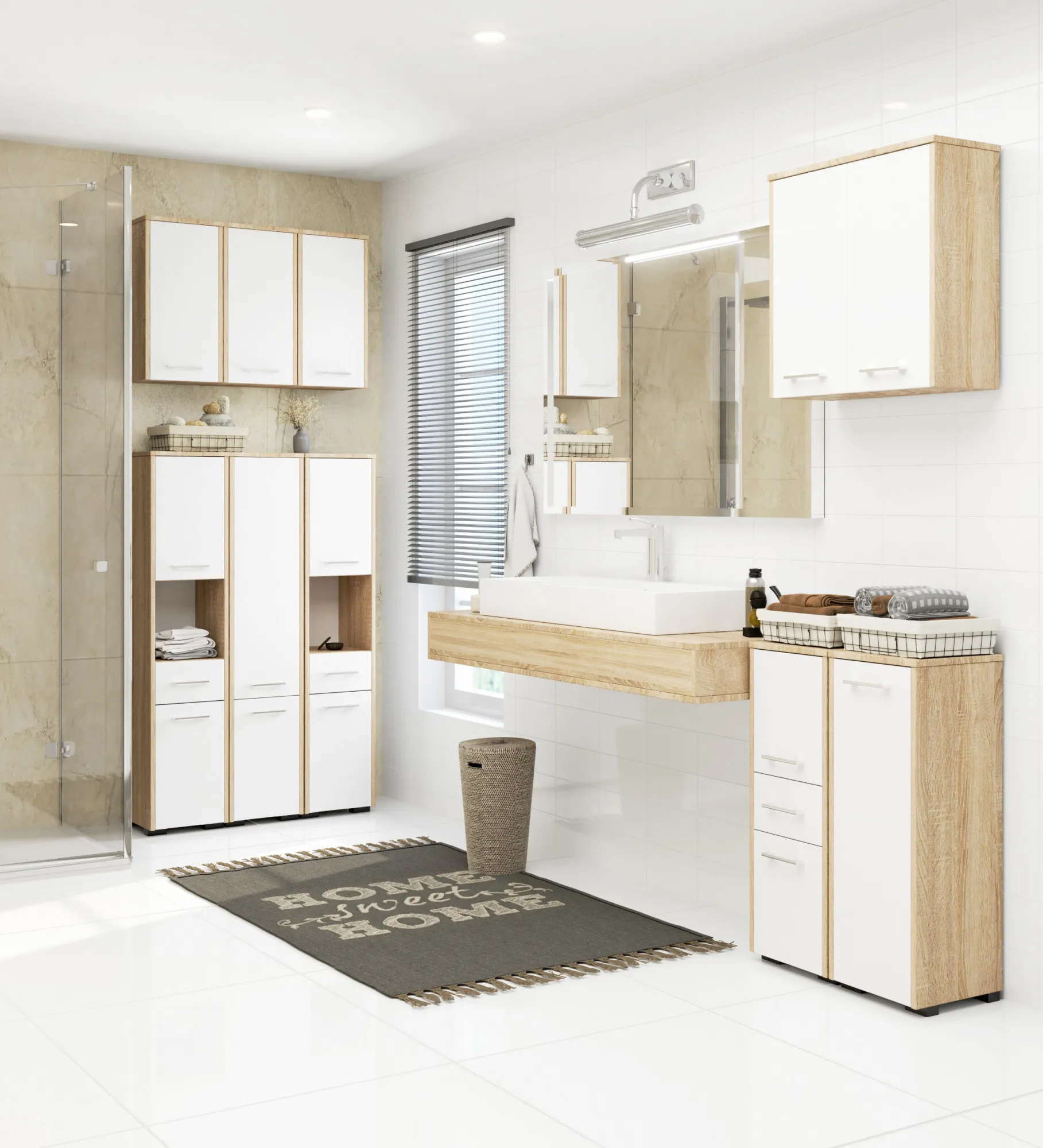 - Kolor: dąb sonoma + biały. Kliknij w link i sprawdź także inne wąskie szafki i regały łazienkowe w sklepie Edinos.pl. Stwórz swój praktyczny zestaw mebli.