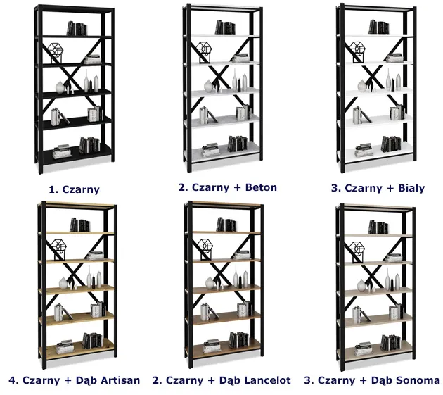 Dotyczy: Czarny regał w stylu loft z metalowym stelażem - Alwaro 4X