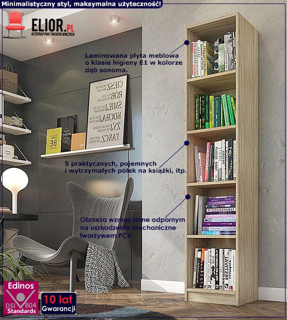 - Kolor: Dąb Sonoma. Zobacz także inne regały na książki w sklepie Edinos.pl. Stwórz swój praktyczny zestaw mebli.