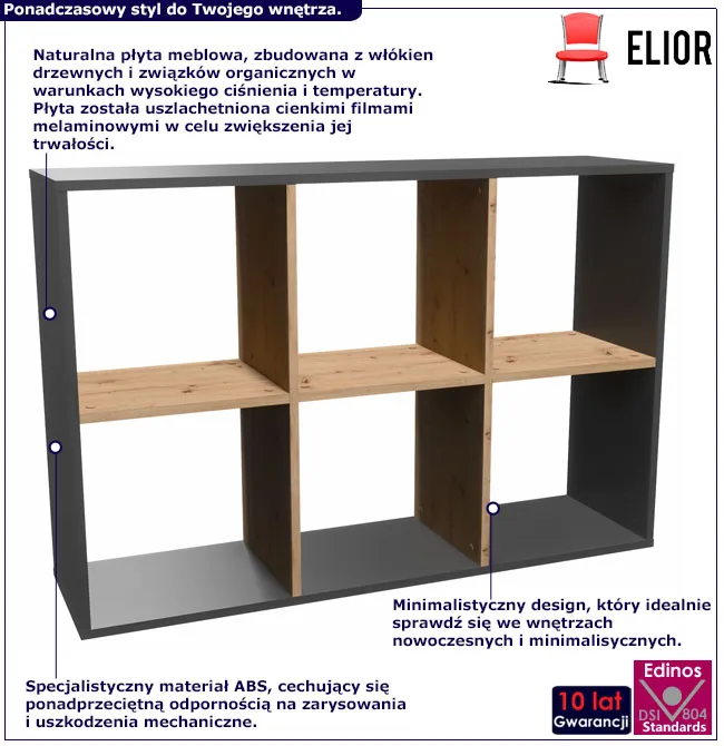 Infografika ażurowego regału do salonu artisan antracyt Atela 4X