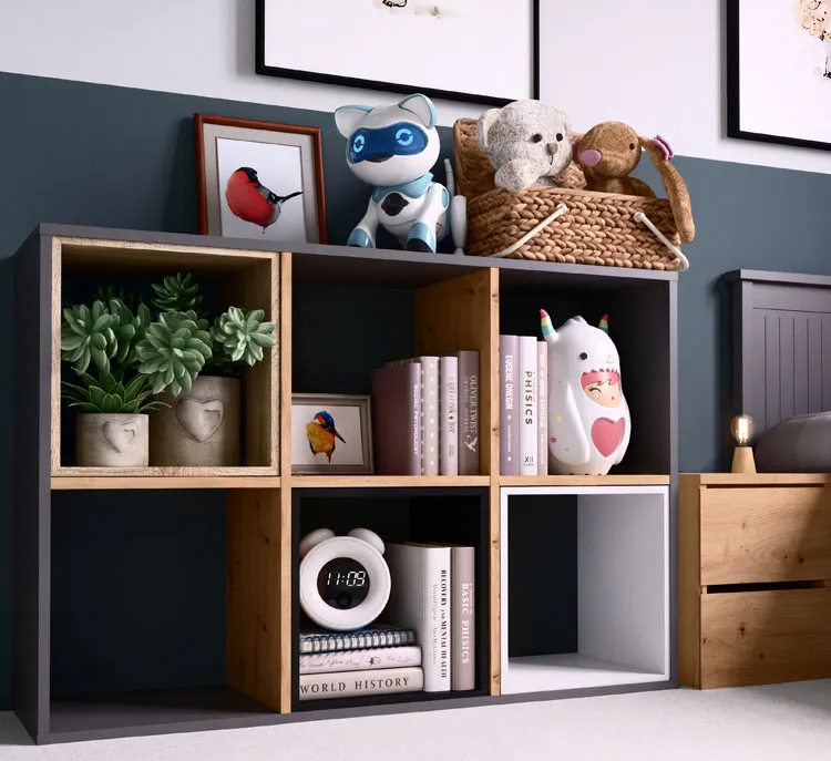 • Estetyka i funkcjonalność: Regał łączy nowoczesny design z praktycznym przechowywaniem zabawek, książek i gier. Otwarta forma półek zachęca dziecko do samodzielnego odkładania rzeczy na miejsce.