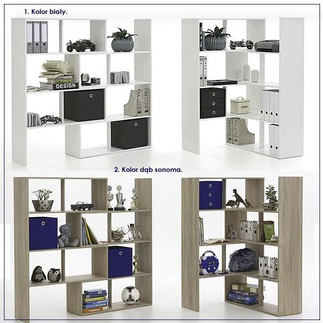 Na poniższych zdjęciach widoczny jest regał Cesaro 10X w dwóch kolorach. Mebel dodatkowo oferowany jest w kolorze wenge oraz olcha.