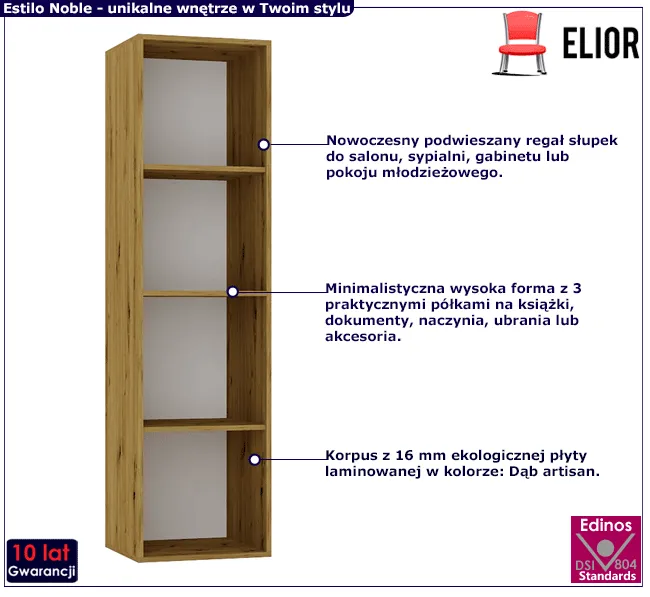 • Modny kolor: Dąb artisan. Szukasz innego regału typu słupek? Kliknij w link i sprawdź regały słupek w sklepie Edinos.pl. Stwórz własny praktyczny zestaw. Zamawiając produkty razem, oszczędzasz na współnej wysyłce.