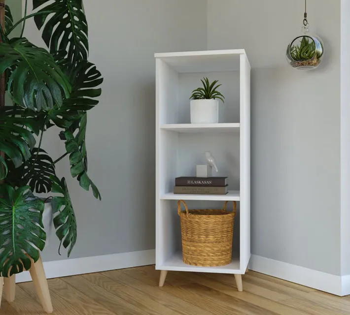 Potrójny regał Ripper to pojemne półki, które pomieszczą wiele. Charakterystyczna cecha tego mebla to stylowe drewniane nóżki, które dodają mu niepowtarzalnego uroku. Dzięki temu ta stojąca półka będzie nie tylko praktycznym elementem, ale również świetną ozdobą wnętrza. Idealnie sprawdzi się nie tylko w roli biblioteczki, ale także jako miejsce na zdjęcia, pamiątki, dekoracje czy zabawki w pokoju dziecięcym. Musisz przyznać, że ten uniwersalny design dopasuje się do właściwie każdego pomieszczenia w Twoim domu. Wysoka jakość wykonania gwarantuje natomiast, że jest to niezawodny zakup na lata. Zaskocz znajomych modnym meblem. Niech Twoje wnętrze zaprasza unikatowym stylem i nigdy nie nudzi.