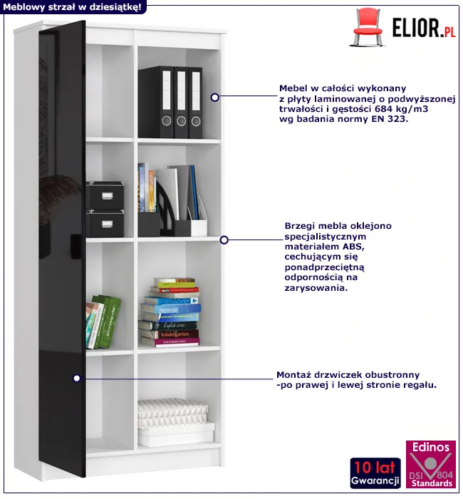 - Kolor: biały + czarny. Kliknij w link i sprawdź także inne regały zamykane na książki, dokumenty w sklepie Edinos.pl. Stwórz swój praktyczny zestaw mebli.