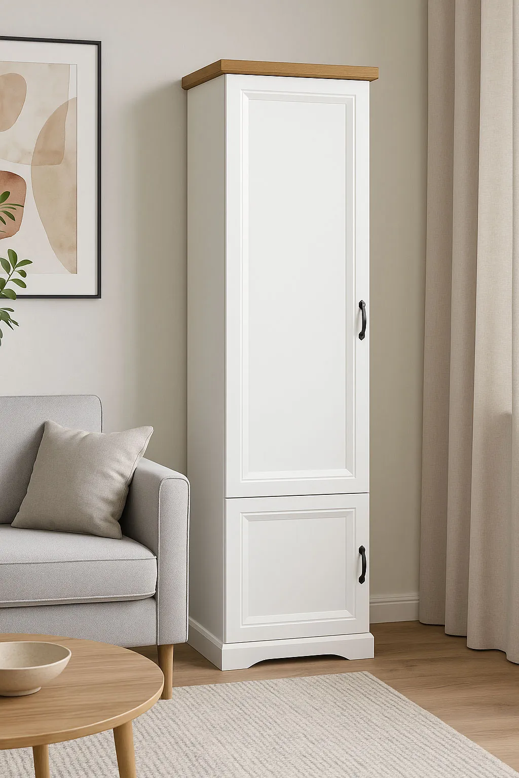 Regał zamykany Epium 7X marki Edinos Premium to mebel, który łączy w sobie smukłą sylwetkę, pojemność i klasyczną estetykę. Jego wysoka bryła pozwala maksymalnie wykorzystać przestrzeń w pionie, a dwudrzwiowa konstrukcja ułatwia utrzymanie porządku w elegancki sposób. Idealnie sprawdzi się w salonie, jadalni, gabinecie czy sypialni – wszędzie tam, gdzie potrzebne jest praktyczne i estetyczne miejsce do przechowywania.