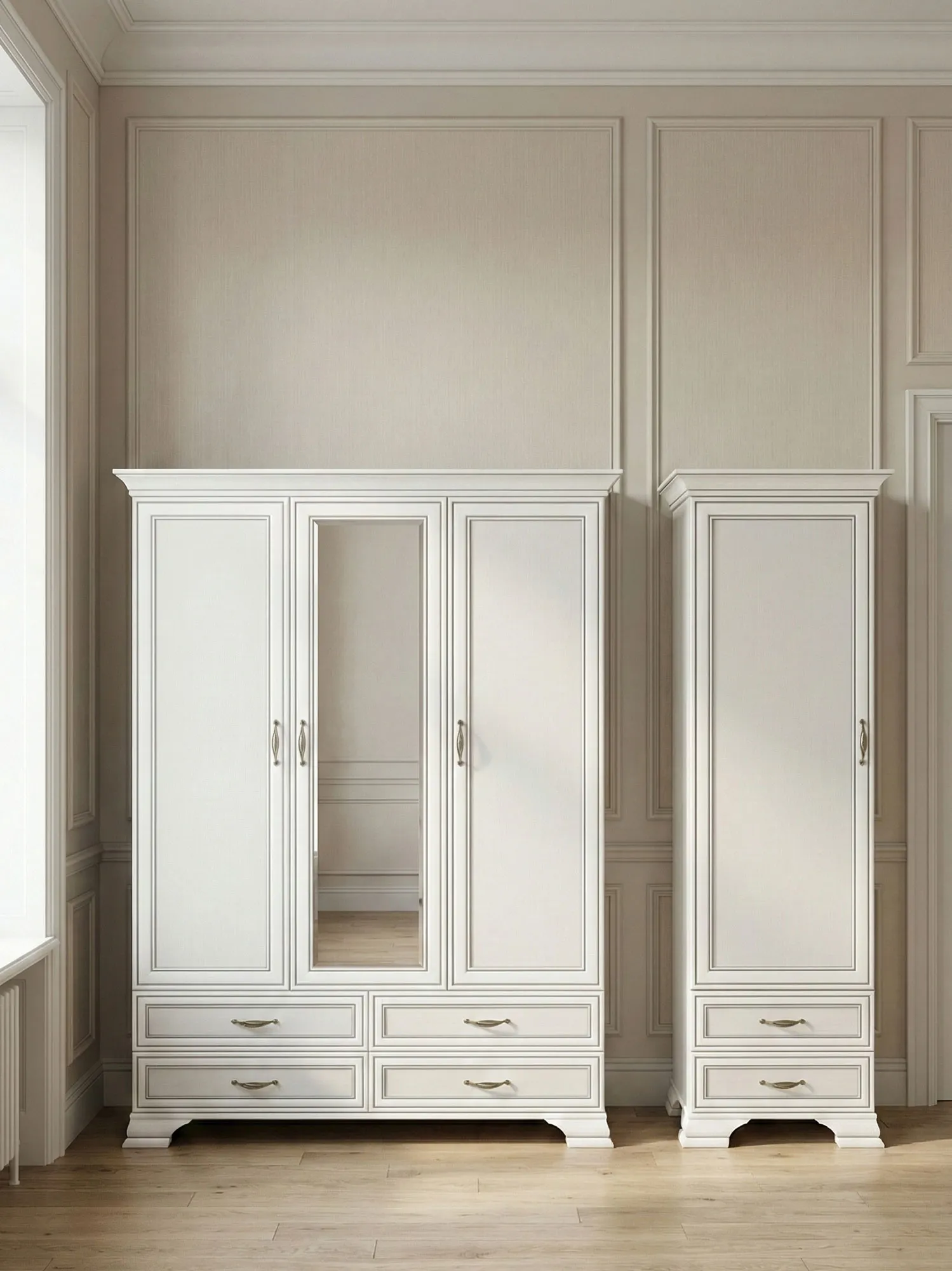 Kolekcja Traviosa to hołd dla klasycznej elegancji w nowoczesnym wydaniu. Charakterystyczne dla niej są fronty z patynowanym ramiakiem, które nadają bryłom wyjątkowego uroku. Górne, wysokie zwieńczenia mebli dodatkowo podkreślają ich klasyczny charakter, natomiast szerokie, frezowane nóżki zapewniają nie tylko stabilność, ale również niebanalny wygląd. Metalowe uchwyty dodają szlachetności i są jednocześnie niezwykle wygodne w codziennym użytkowaniu. Kolekcja zawiera meble nie tylko do salonu, ale również sypialni czy eleganckiego przedpokoju.