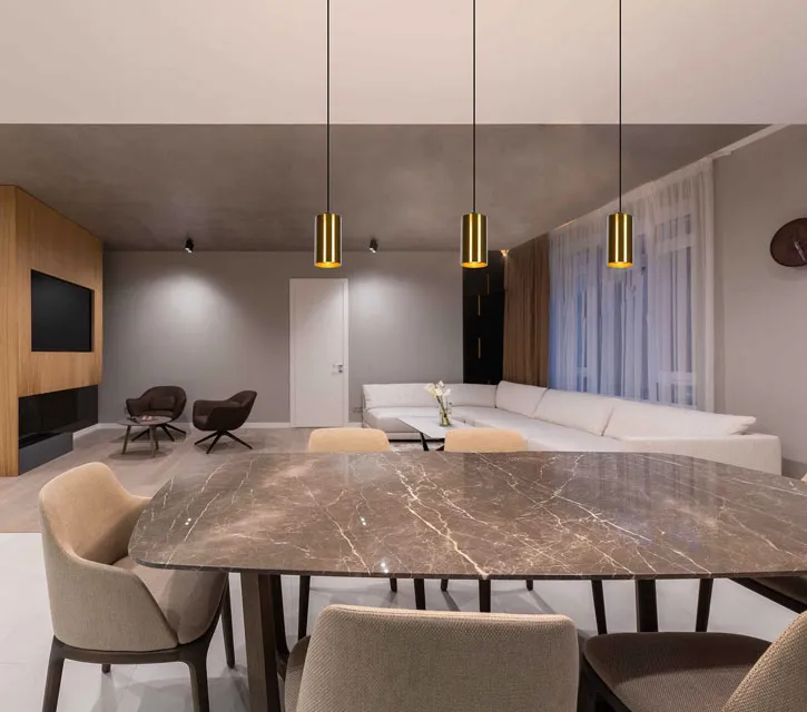 Seria lamp Kolma to nasza najnowsza kolekcja stworzona z myślą o wnętrzach urządzonych w stylu industrialnym oraz nowoczesnym. Choć wyróżniają się surową i minimalistyczną formą tak charakterystyczną dla loftów, to mają niezwykłą moc tworzenia przytulnej i klimatycznej aury. Prezentowana lampa będzie idealnym rozwiązaniem do salonu, kuchni i jadalni. Wisząc nad stołem lub wyspa kuchenną nie tylko doświetli tak ważne dla domowników miejsca, ale przede wszystkim wykreuje ciepłą i kameralną atmosferę. Choć najbardziej spektakularny efekt osiągniesz wieczorem, to za dnia lampa również spełni swoją rolę - będzie unikatową dekoracją Twojego wnętrza. Dodatkowym atutem jest fakt, że możesz regulować długość zwisu, dzięki czemu dostosujesz lampę do swoich potrzeb.