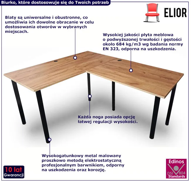 Dotyczy: Narożne biurko z regulacją 150x90x60 dąb craft złoty - Salvada