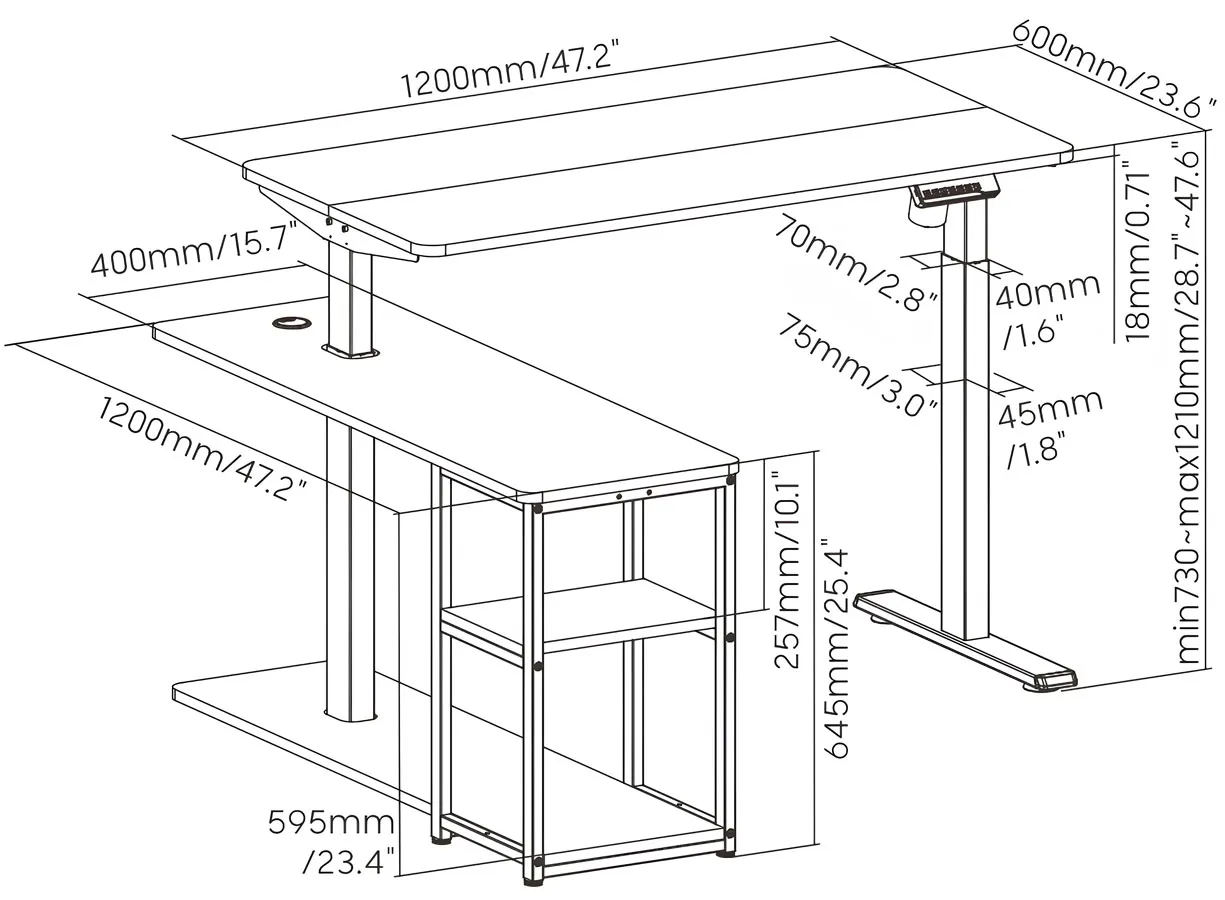 • Szybka i płynna regulacja – biurko unosi się z prędkością 25 mm/s, zapewniając płynne dostosowanie do Twojej idealnej wysokości.