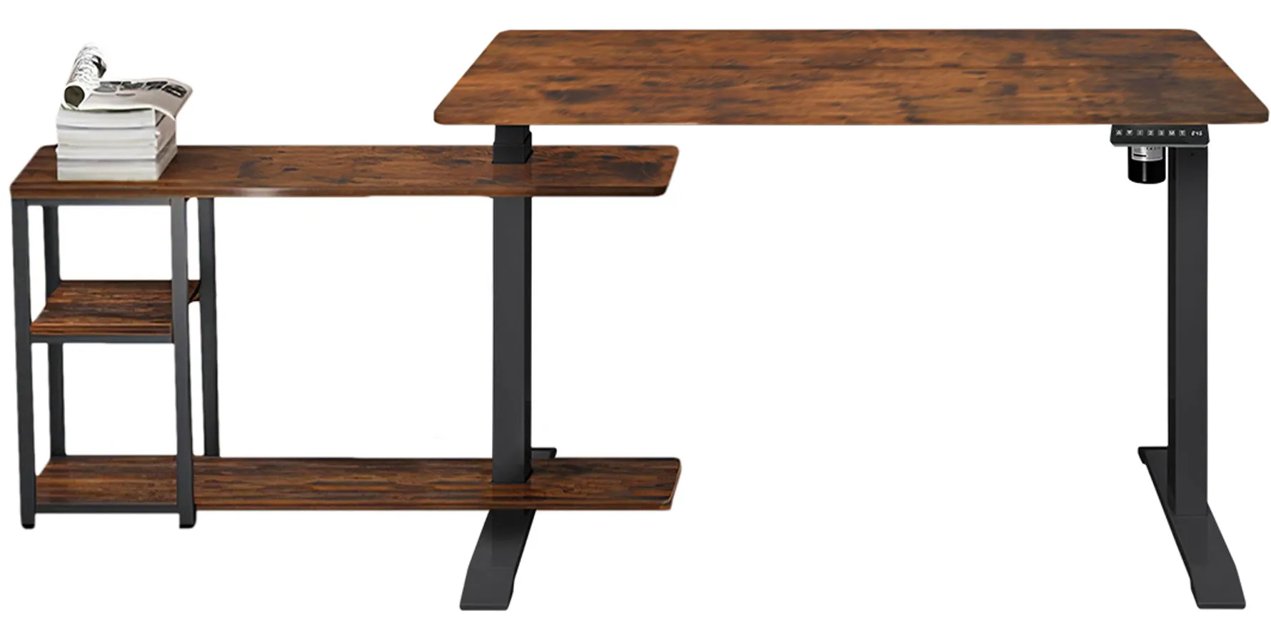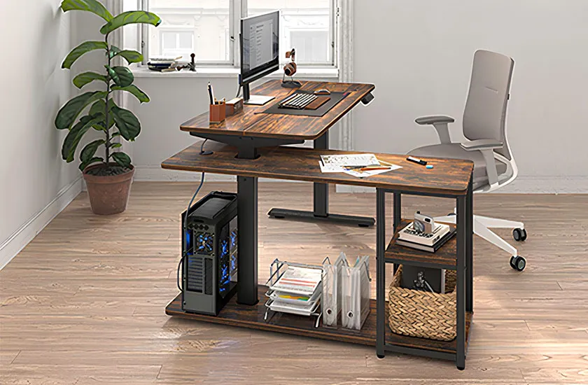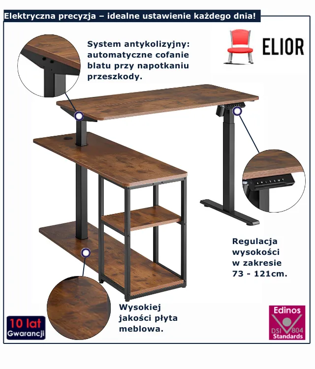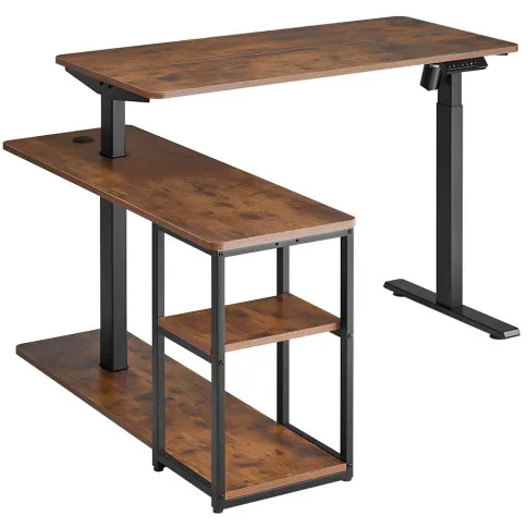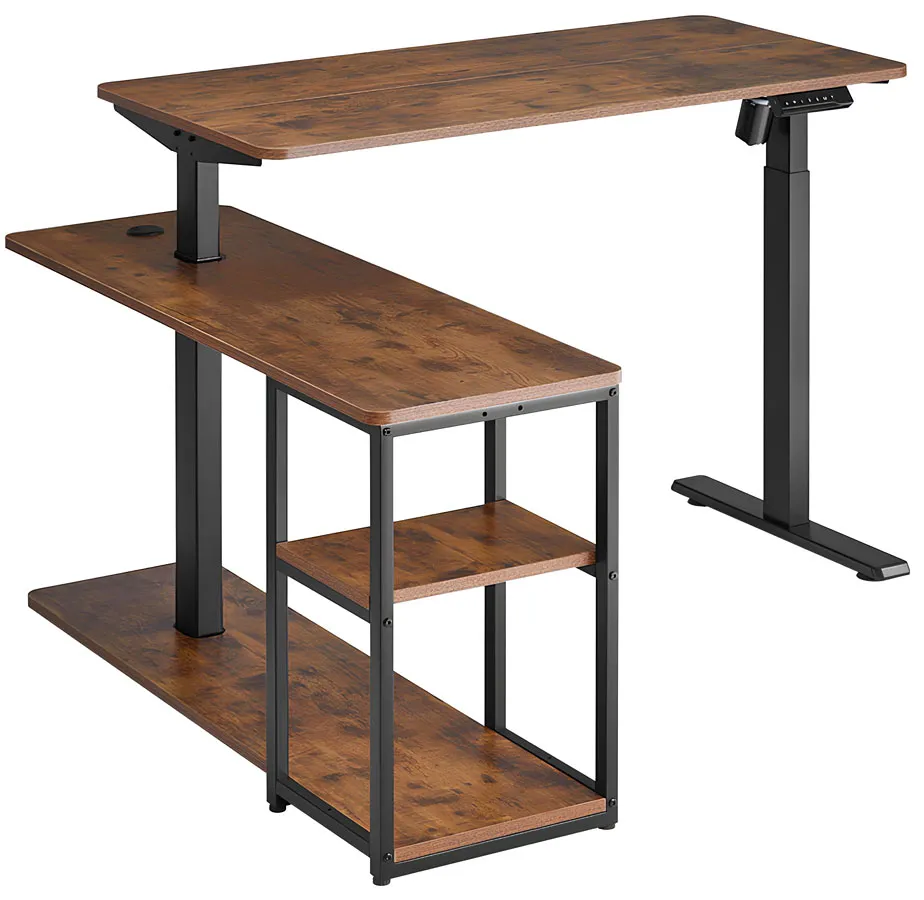 Regulowane biurko narożne w kolorze rustykalny brąz - Craftes