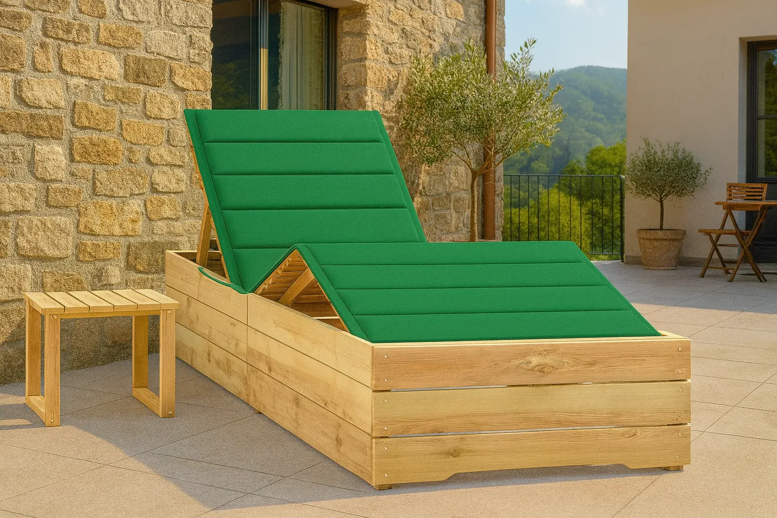 Dotyczy: Leżak z poduszką i stolikiem jasnozielony - Ogebis