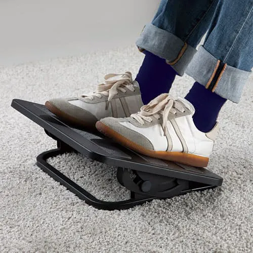 • możliwość regulacji kąta nachylenia od +20° do -20° pozwala na dostosowanie podnóżka do indywidualnych potrzeb użytkownika, co wspiera prawidłową postawę ciała i redukuje napięcie w nogach oraz plecach.