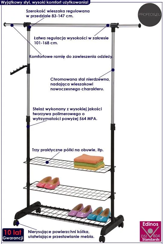 Dotyczy: Regulowany wieszak na ubrania na kółkach - Alicante 2X