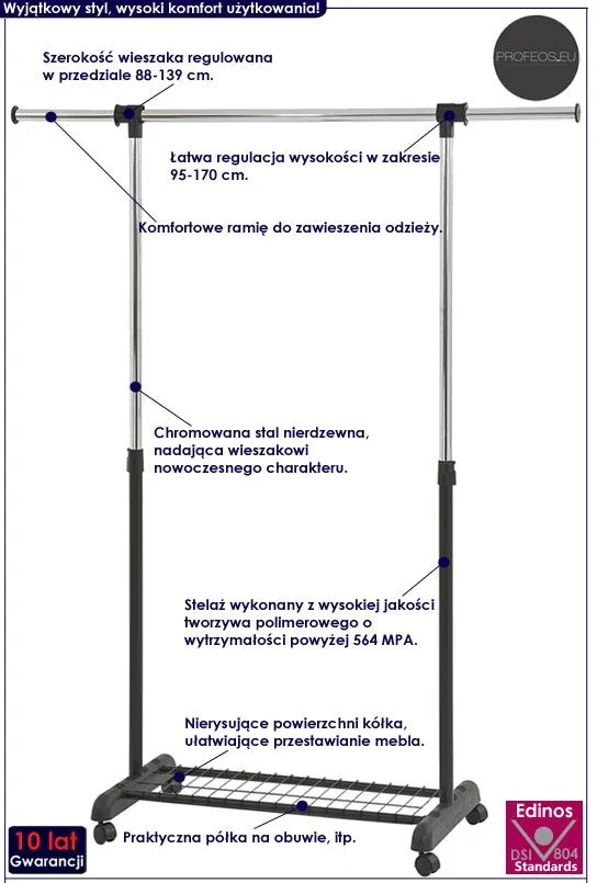 Dotyczy: Regulowany wieszak na ubrania na kółkach - Alicante 2X