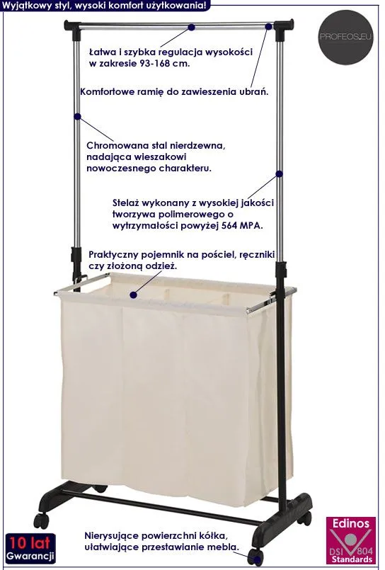 Dotyczy: Regulowany wieszak na ubrania na kółkach - Alicante 2X