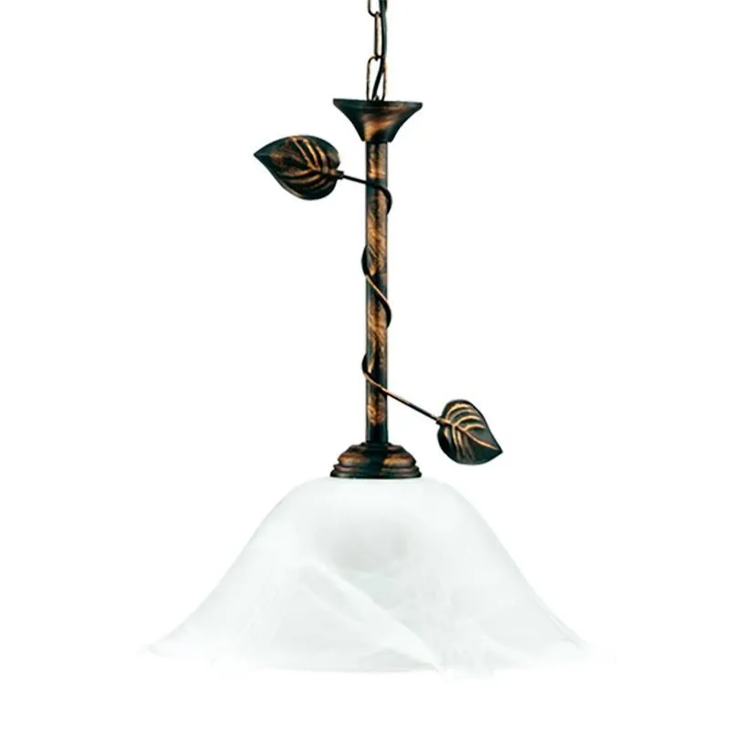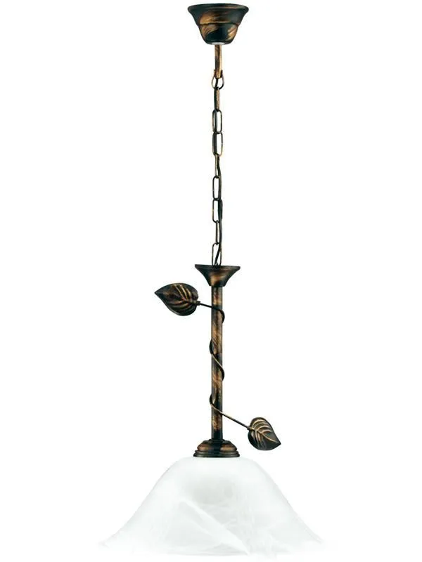 Lampa wisząca E638-Parmo to doskonała propozycja dla miłośników stylu retro. Jego biały klosz stylizowany na kielich kwiatu doskonale podkreśli charakter klasycznych wnętrz. Całość została osadzona na solidnej, metalowej oprawie dodatkowo przyozdobionej listkami. Produkt został wykonany z materiałów wysokiej jakości, dzięki czemu prezentuje się wspaniale, jednocześnie zachowując walory niezawodności.
