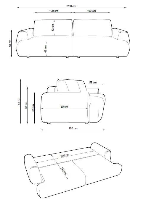 • funkcja spania umożliwiająca szybkie przekształcenie sofy w wygodne miejsce do snu
