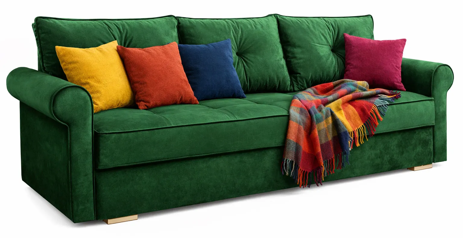 Dotyczy: Welurowa kanapa z pojemnikiem na pościel kolor musztardowy - Orit 4X