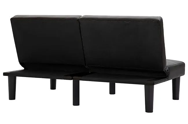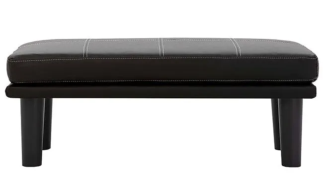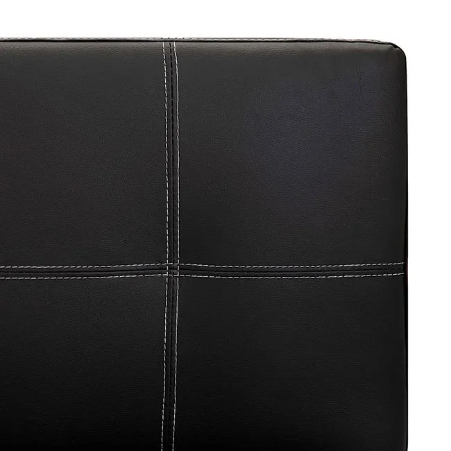 Designerska tapicerka w czarnym kolorze wykonana została z najwyższej jakości ekoskóry (skóry ekologicznej), łatwej do utrzymania w czystości. Ekoskóra używana przy produkcji mebli marki Elior jest o wiele bardziej odporna na słońce oraz substancje płynne , co pozwala Ci na długie i bezpieczne użytkowanie. Już nie musisz się martwić, że rozlana kawa spowoduje konieczność wymiany mebla. Skóra ekologiczna została pokryta warstwą polichlorku winylu. Konstrukcja z twardego drewna wzmocnionego płytą MDF zapewnia stabilność przy niewielkiej wadze. Metalowe nogi dodatkowo wzmacniają konstrukcje w najbardziej newralgicznym miejscu.