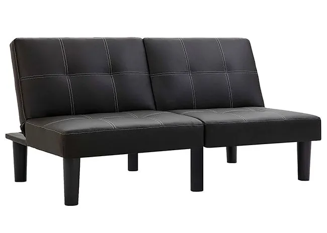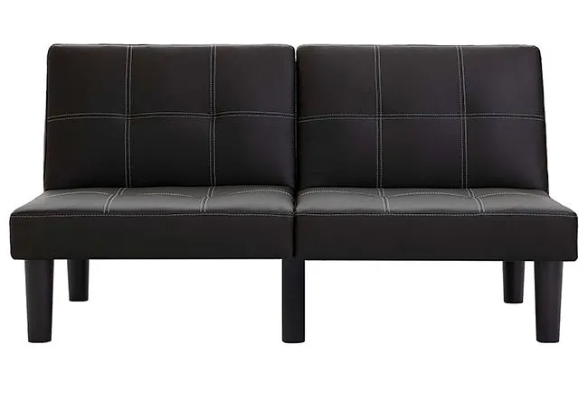 czarna elegancka sofa pasuje do każdego wnętrza, mimo minimalizmowi to ma w sobie to coś, widoczne szycia ciekawie rozbijają bryłę !