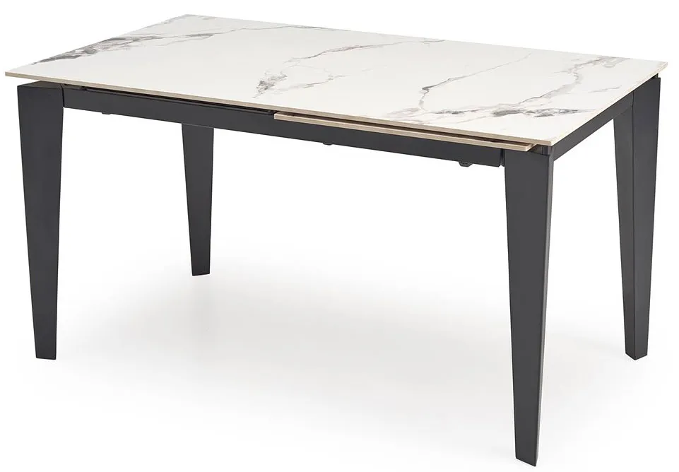 Rozkładany biały stół z blatem imitującym marmur - Drix