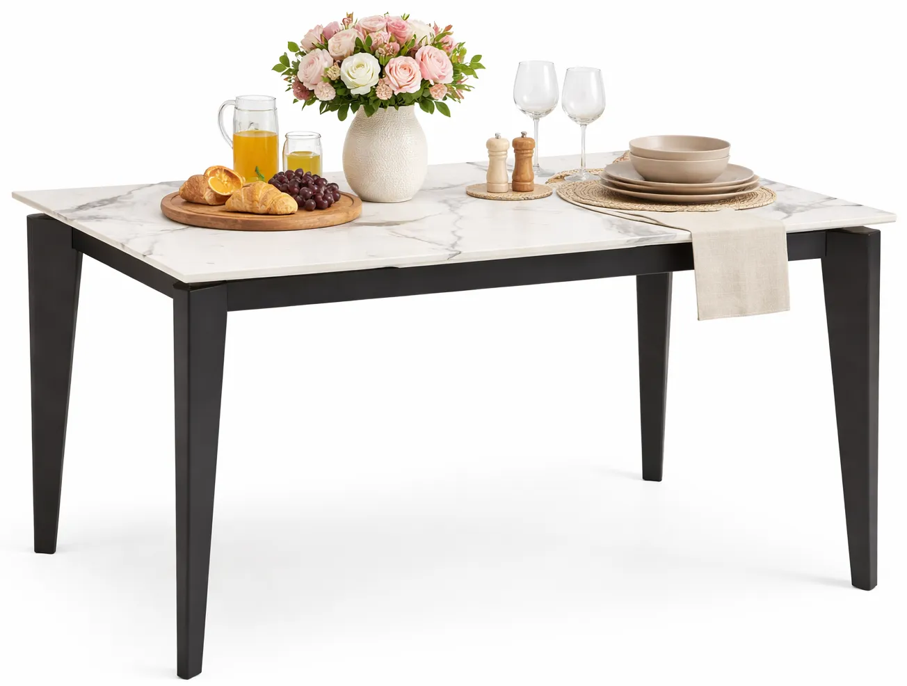 Wygląda naprawdę elegancko – biały kolor i imitacja marmuru dodają mu luksusowego charakteru. Mechanizm rozkładania działa bez zarzutu, a po rozłożeniu zyskuje na długości, co jest świetne podczas spotkań z rodziną czy przyjaciółmi. Montaż nie sprawił mi trudności, a całość jest solidna i stabilna. Świetny wybór dla osób, które cenią sobie styl i funkcjonalność w jednym!