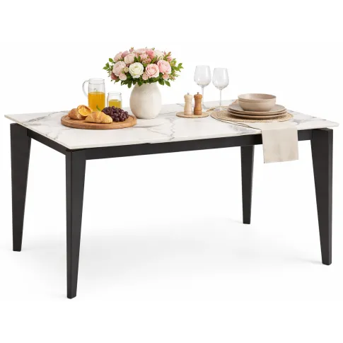 Stół wygląda bardzo elegancko, ten jasny blat w stylu marmuru naprawdę robi wrażenie w jadalni. Nogi są stabilne, nic się nie chwieje, więc spokojnie można przy nim usiąść większą grupą.