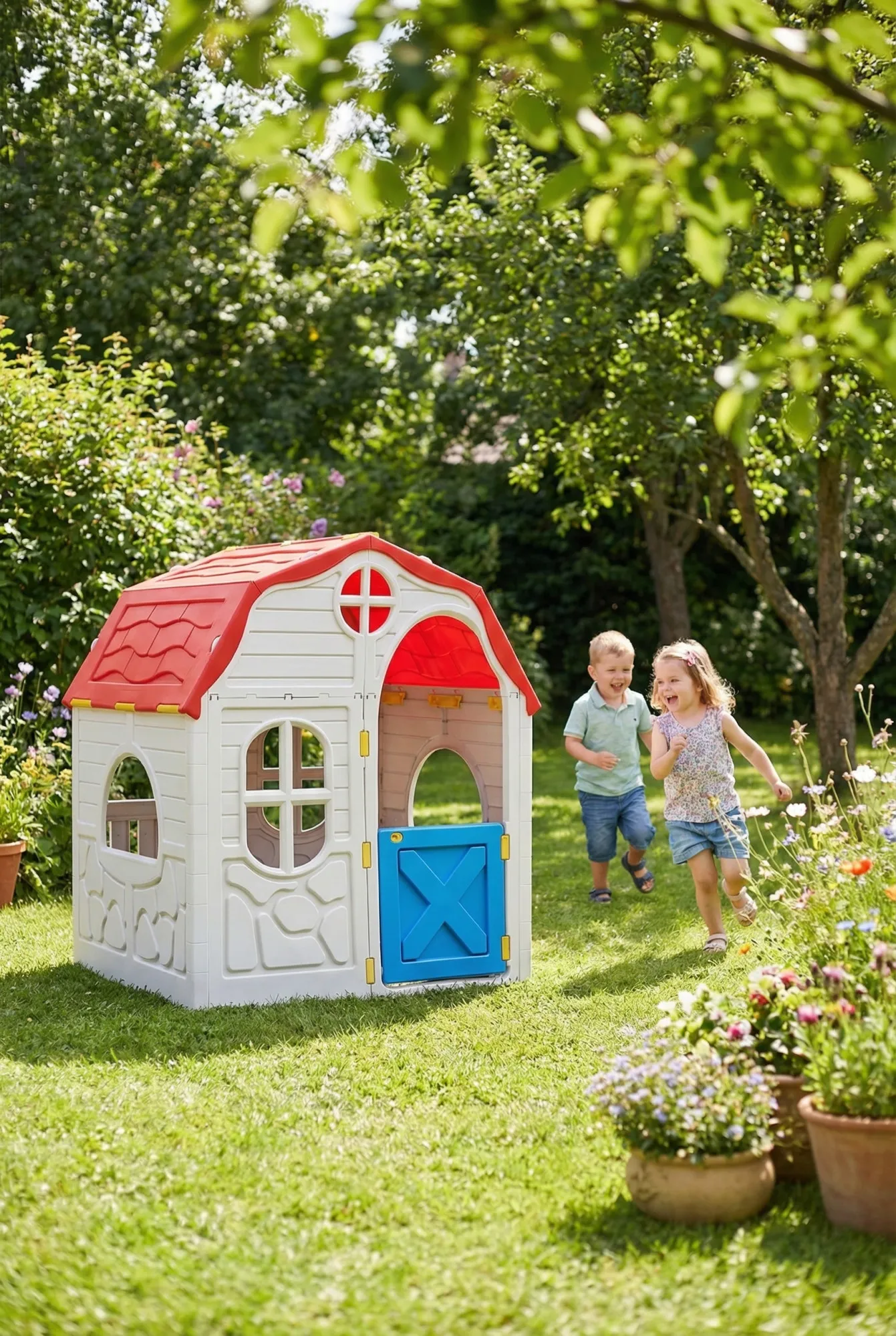 Aranżacja ogrodu z domkiem dla dzieci Xinis
