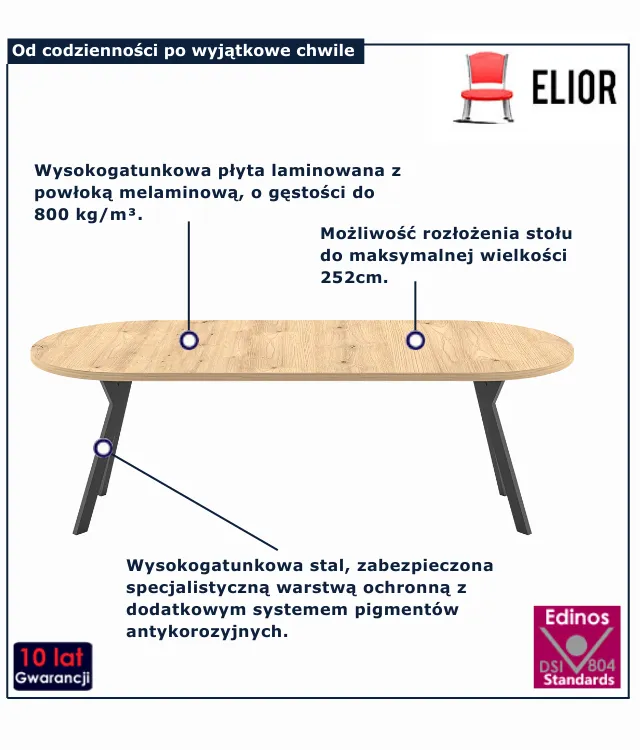 • Stabilna konstrukcja gwarantuje komfort użytkowania niezależnie od liczby osób przy stole.