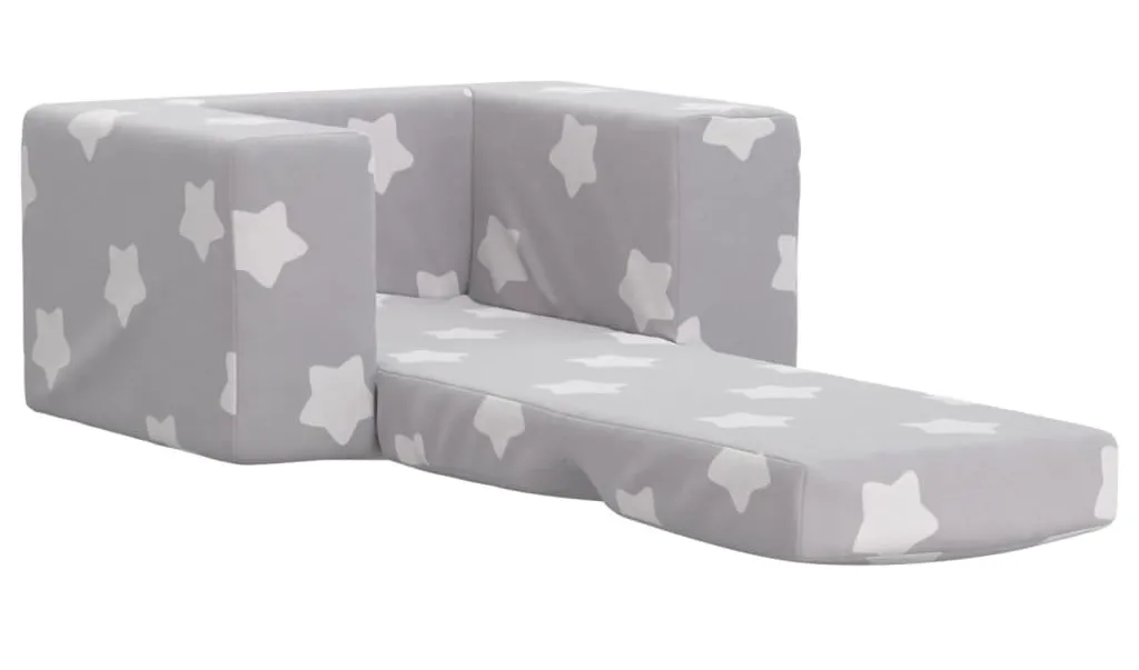 Rozkładany pluszowy fotel dla dziecka szary z gwiazdkami - Hurems 3X
