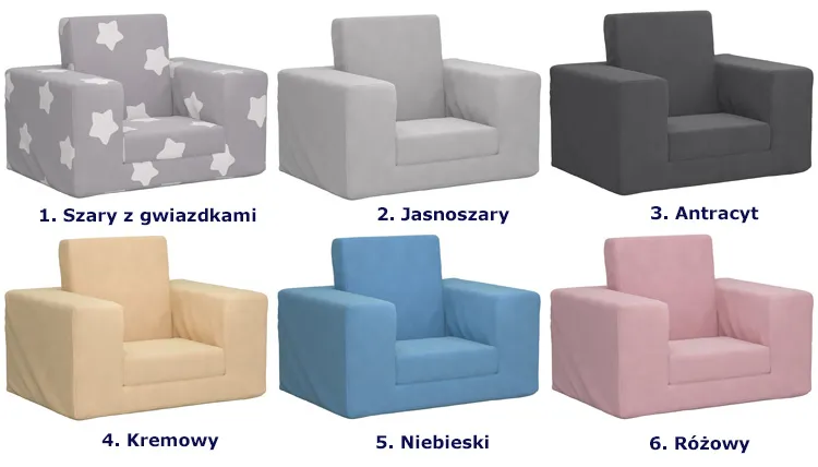 • Kolor: szary z gwiazdkami. Kliknij w link i sprawdź także inne foteliki i sofy dziecięce w sklepie Edinos.pl. Stwórz swóją praktyczną przestrzeń.