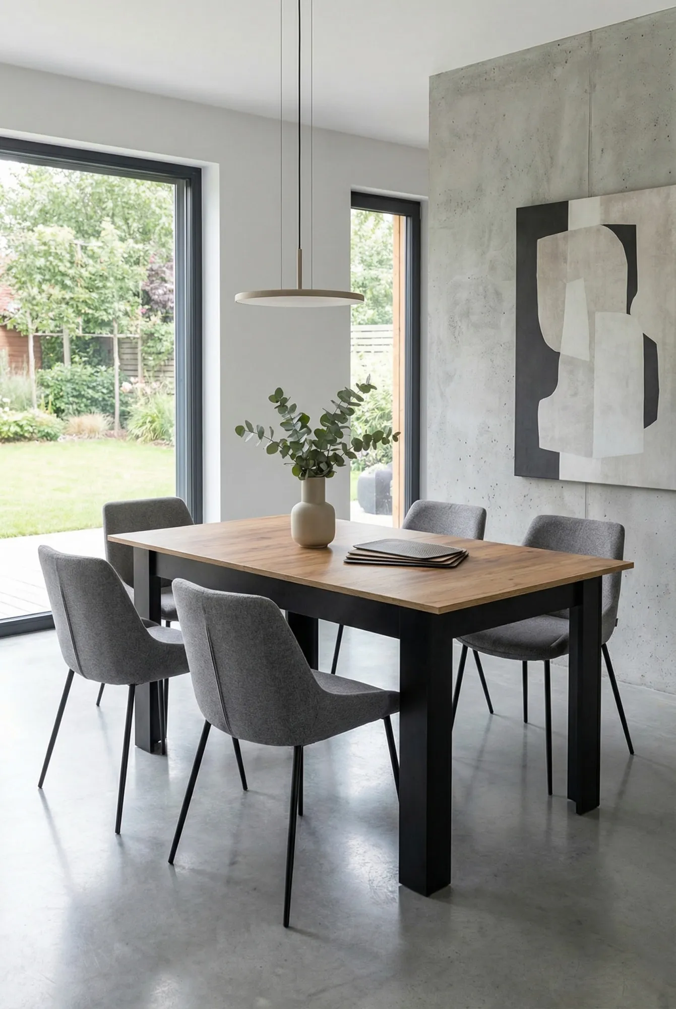 Wnętrze nowoczesne ze stołem Egasso dąb craft + czarny
